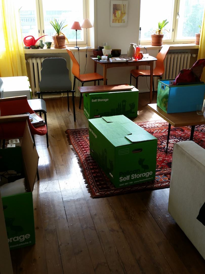 Maanantai-iltana saatiin pakettiauto ja heitettiin ensimmäiset kamat meidän varastolle, joka vuokrattiin tuosta Herttoniemestä. Matka ei onneksi ole pitkä ja nyt muuton aikana ollaan huomattu että läheinen etäisyys on todella tärkeä. Sinne voi hurauttaa useamman kerran eikä aikaa tuhriinnu matkoihin.
