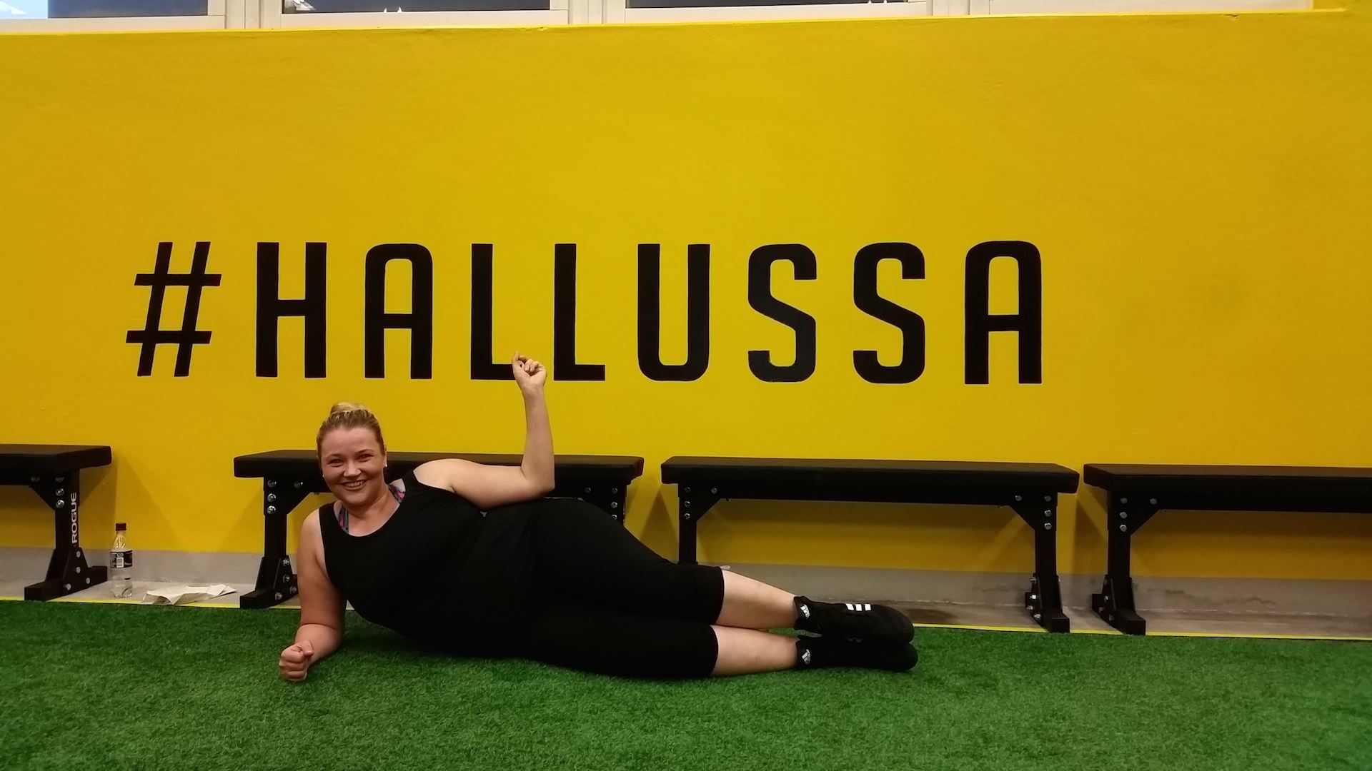 Tapahtuma oli tosi mukava ja oli ihana nähdä siellä myös Jonnaa ja Katria! Olin niin tyytyväinen että osallistuin ja ylitin itseni. Vaikka nolotti ja olin huonossa kunnossa niin menin ja annoin kaikkeni. Hyvä treeni – parempi mieli. Ehkä tää tästä! Ja yllättävää kyllä, en tullut edes kipeäksi niin kuin salitreeneistä ihan alussa. Kroppa taitaa sittenkin alkaa jo taipumaan vähän notkeampiin asentoihin! Ehkä tää tästä! 🙂 Kyllä tää on mulla vielä #hallussa!