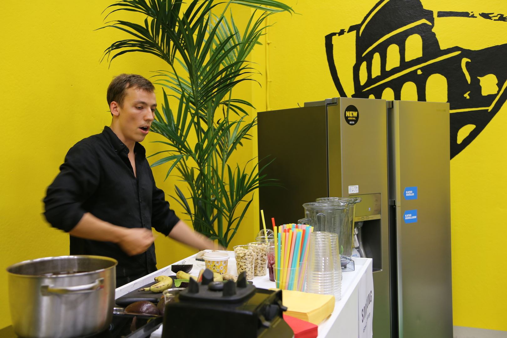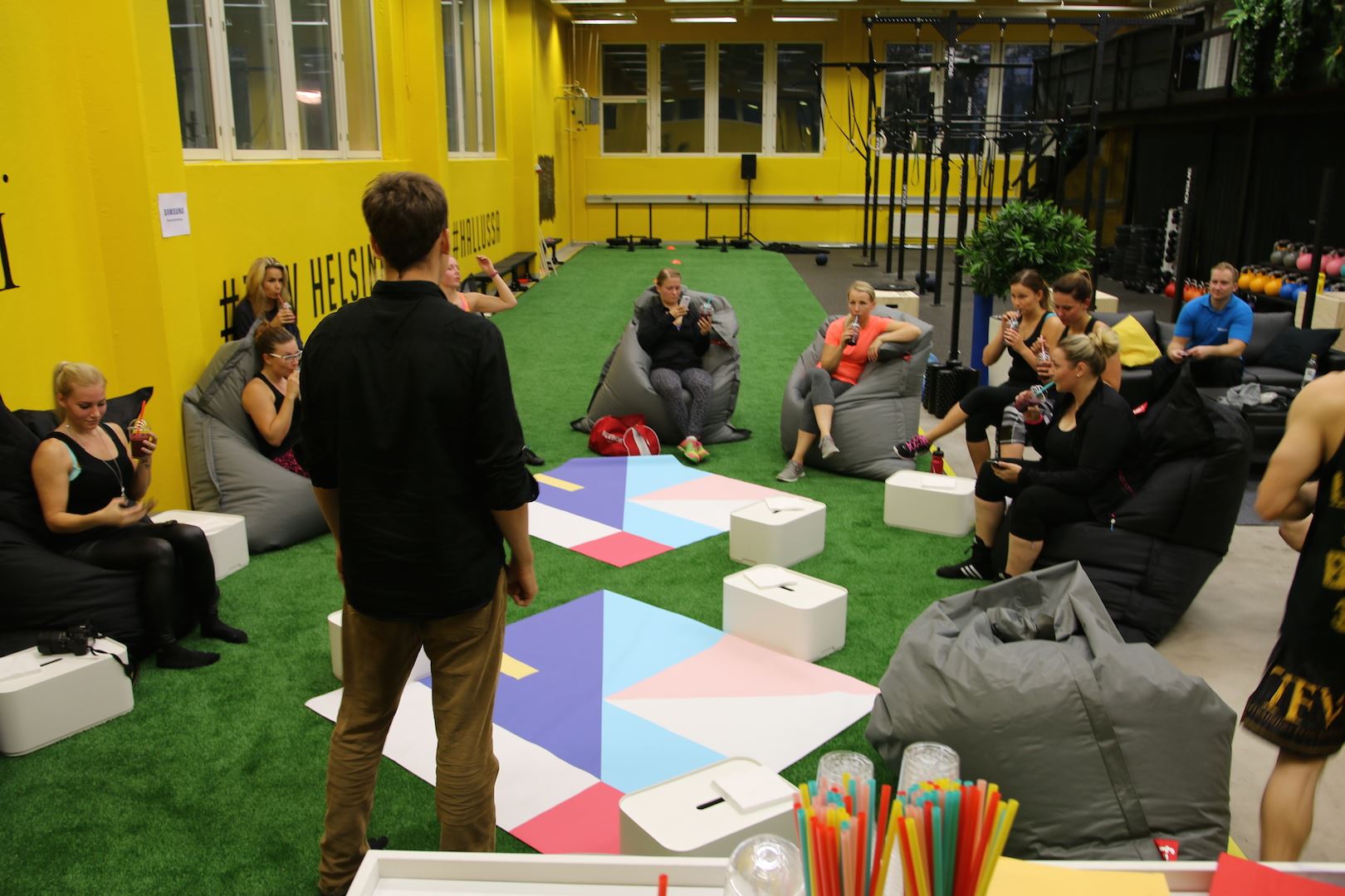 Treenin jälkeen oli tosiaan ravintoasiantuntija Jaakko Halmetojan niksit maukkaiden palautusjuomien ja smoothieiden tekoon. Me saatiin marjainen palautusjuoma ja suklainen aamun herättäjä. Oon kuullut Jaakkoa aiemmin CocoVi:n bloggaajaillassa ja tykkäsin kovasti. Nytkin olisi voinut kuunnella pidempäänkin! Todella mukaansatempaava tyyppi ja miellyttävä tapa kertoa asioista. Tykkäsin!