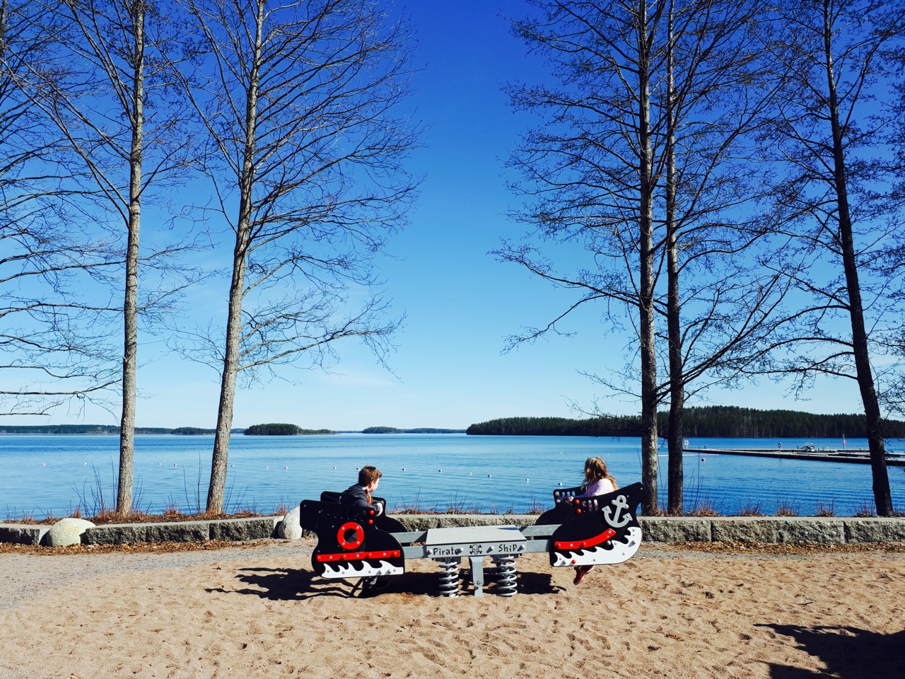 Saimaasta oli jäät sulaneet ja vesistö näytti upealta. Lämmin viikonloppu oli todella kaunis ja tuntui ihanalta, että lämpötilat nousivat jo vähän korkeammalle. Ulkoillessa leikkipuistossa tuli jopa kevyen takin kanssa liian kuuma. Meikäläisen mielestä reissussa parasta oli se kun sai ihailla järvimaisemia. En vaan kyllästy kimmeltävän veden tuijotukseen ja siihen rauhoittavaan ääneen mikä veden äärellä kuuluu. Ja onhan nuo maisemat aika upeat! Niin sininen taivas ja tyyni järvi.