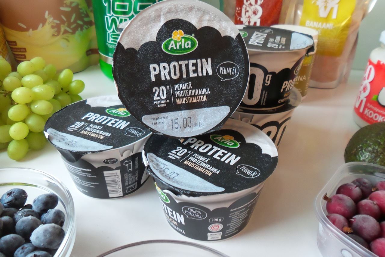 Arla protein rahkoja oon maistellut nyt enemmän ne on mun makuun todella hyviä. Viime rahkavertailun jälkeen joka oli edellisessä postauksessa ostin sitä vertailusta uupuvaa Skyrriä ja esimerkiksi siihen verrattuna maku on hyvin erilainen. Veikkaan että ero tulee siitä että Skyrrissä oli makeutusaineita ja Arla protein rahka on sen sijaan makeutettu pienellä määrällä sokeria ja steviaa eikä siten sisällä keinotekoisia makeutusaineita. Maku ei olekaan yhtä makea vaan selkeästi neutraalimpi. Energiamäärässä se näkyy että marjaisissa mauissa on 2g enemmän sokeria per 100g mutta maustetussa ei. Muissa ravintoaineissa ei ole eroa vaan proteiini- ja rasvamäärä on sama, tosin purkkikoko on eri. Yksi ero oli myös koostumuksesssa eli Arla protein on sileää eikä sisällä marja-tai hedelmäsattumia. Nää on tietysti makuasioita mikä on kenenkin mieleen mutta siinä siis pientä tieteellistä vertailua 🙂